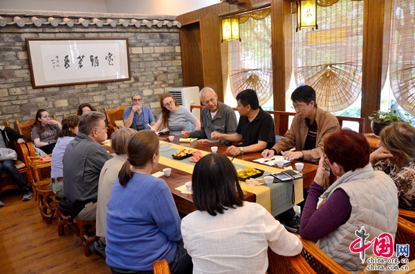 在景东银生茶堂,景东县茶叶协会会长为美国茶友讲授了普洱茶的绿茶、红茶等内容,并向19位美国茶友讲述了六大茶类的工艺要点和保健功效,且详细介绍了景东县作为普洱茶原产地核心区的自然资源环境及所生产的普洱茶优点。同时,美国茶友们还就普洱茶相关知识同景东县部分茶企业代表进行了交流。